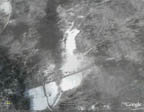 | Looking up from the base area. These wide slopes were served by a couple of T-bars. | The entire mountain at a glance. Notice the lower slopes at the bottom right. You would ride 2 T-bars before reaching the main T-bar to the summit. Note the overall narrow trails that the longer T-bar served. | Looking down the slopes from an elevation of about 1750'. Looking closely, it appears that the T-bar is still standing, as the towers are barely visible. Note how the wider trail from the summit has several tree islands. This is possibly the Alpine Meadows Slope. | A closeup of the summit area, showing the possible wider Alpine Meadows Slope. |